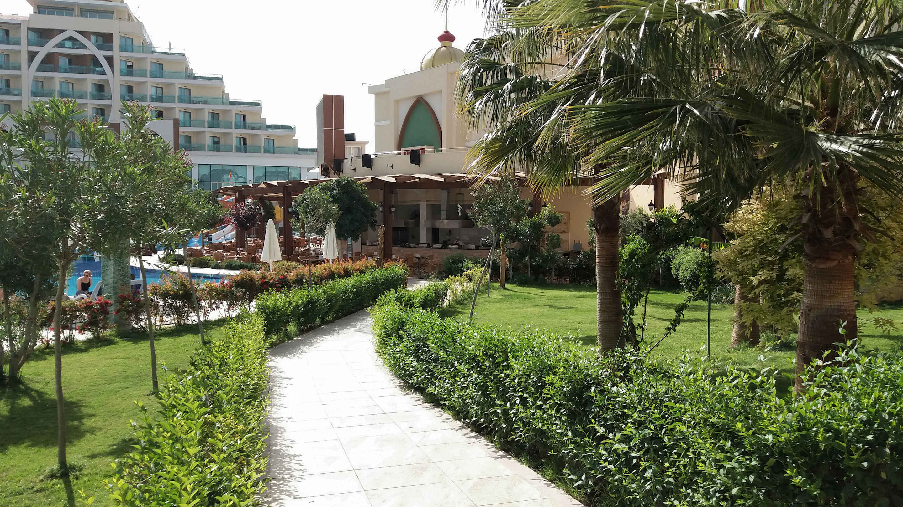 GartenanlagePoolanlage mit Garten und Poolbar (bis 24 Uhr) mit Imbiß (von 11 bis 17 Uhr): Döner, Pizza, Pommes, Salate, Hamburger