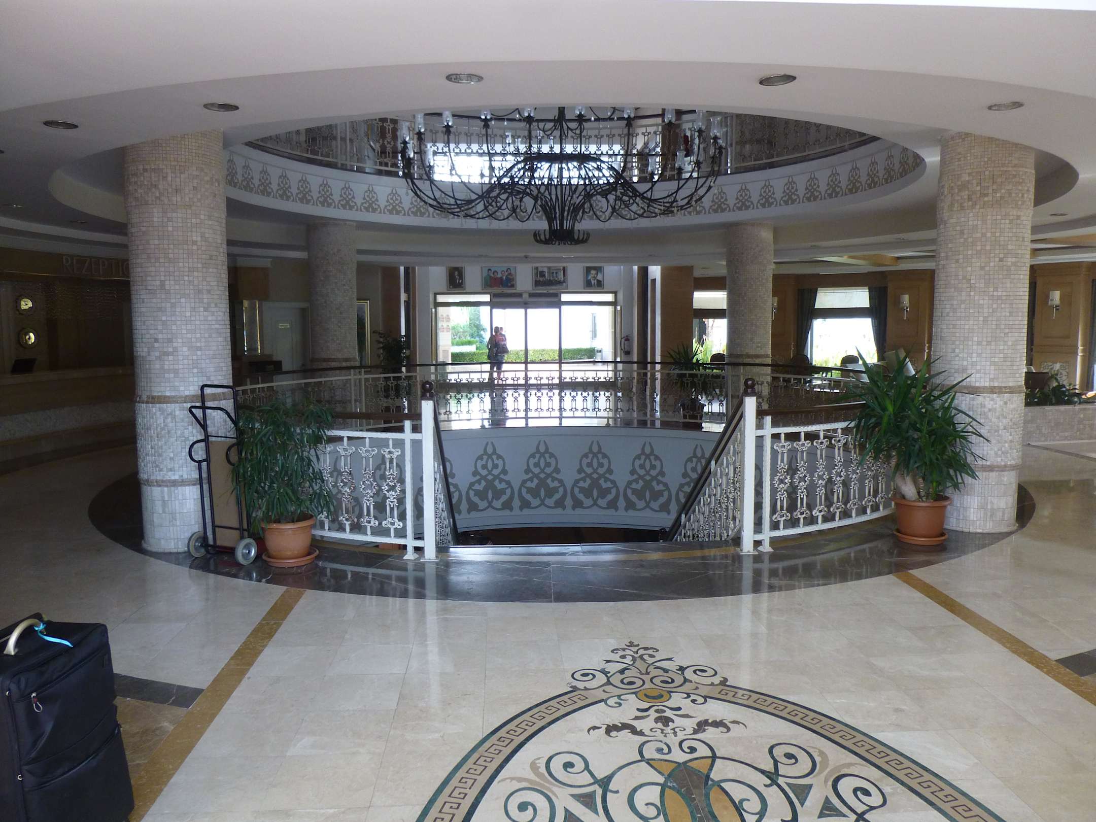 Treppe zur unteren Etage mit Lobbybar
