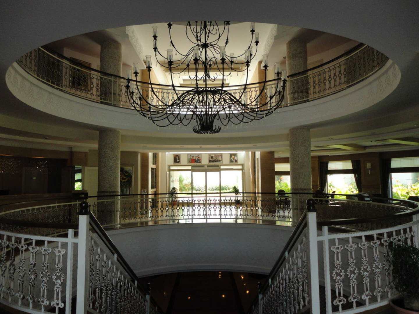 Schody prowadzące z głownego hallu na basen.