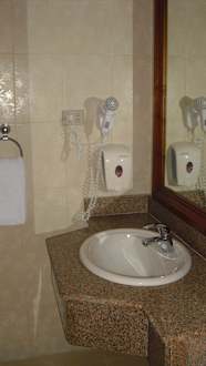 Waschtisch mit Seifenspender und Fön