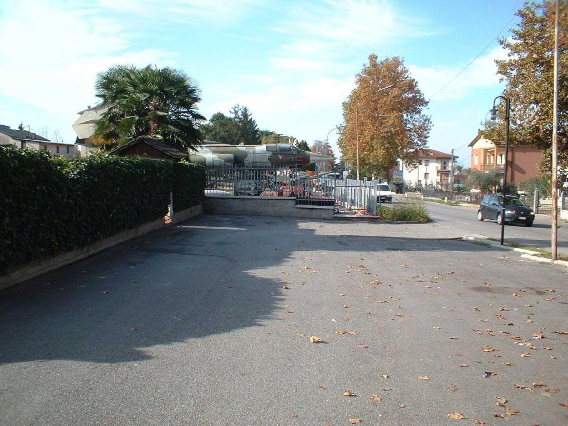 Zu sehen die Parkplätze und dahinter auf dem Nachbargrundstück ein Kampf-Jet und andere nette Dinge die hier wohl verkauft werden ;-)