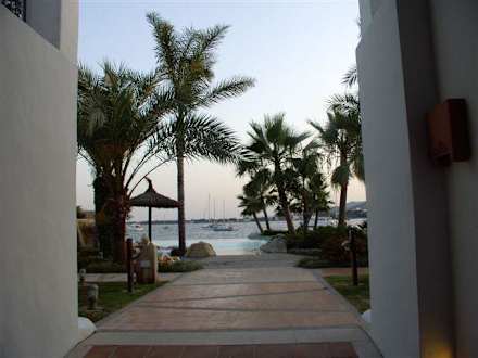 Aussicht wenn man aus dem Gebäude zum Pool läuft.