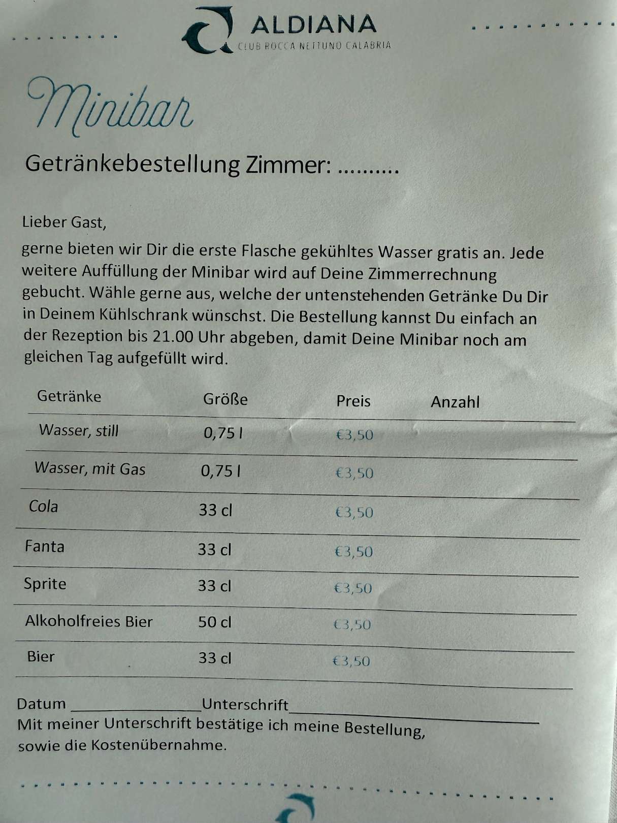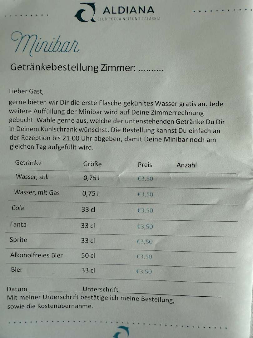 Leere Minibar. Alles muss gezahlt werden.