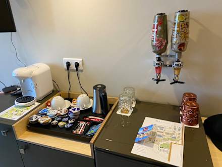 ZimmerTassimo, Wasserkocher und kleine „Cocktailbar“. Kühlschrank war stets gut gefüllt. Danke dafür!