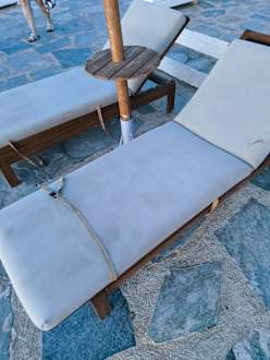 PoolDie Auflagen sind alle fleckig vom Schweiß und Salzwasser, welche in der Sonne trocknen. Ist zum Teil normal, aber dennoch teils eklig.