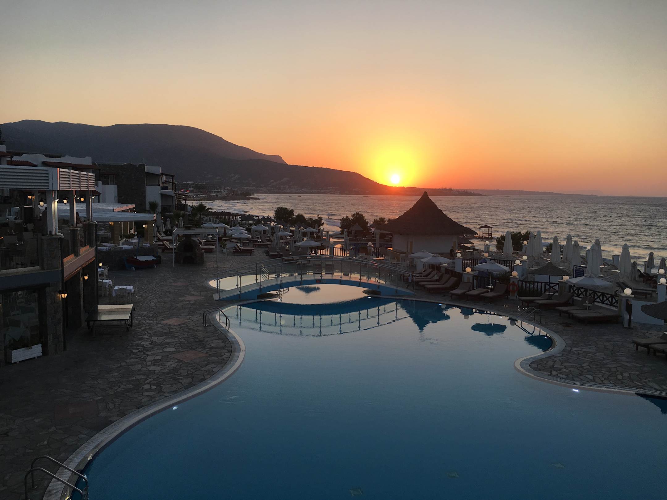 Sonnenuntergang beim Abendessen im Hotel Alexander Beach.