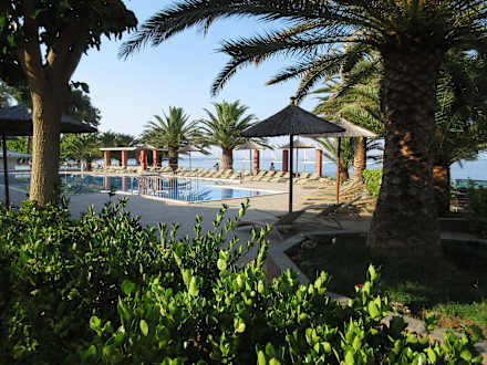 Blick vom "Elia" auf den Pool und das Meer
