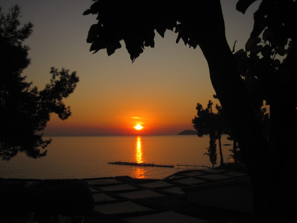 Ausblick von der Terrasse des Speisesaals - fast jeden Abend ein toller Sonnenuntergang.