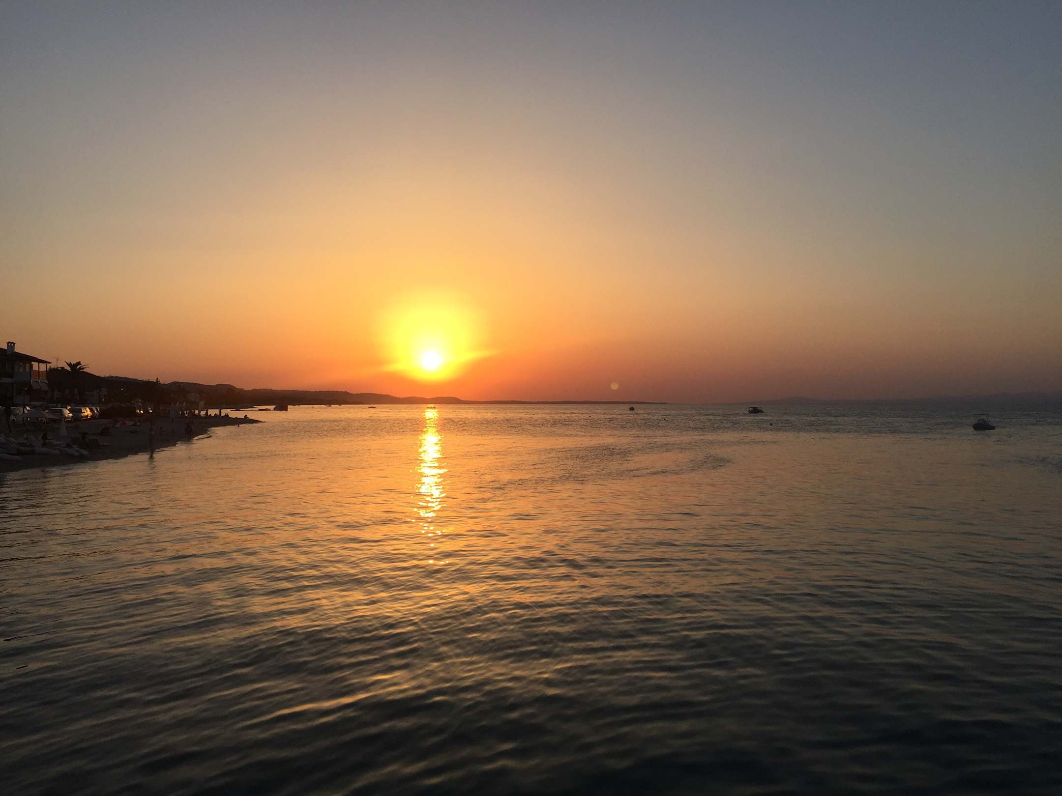 AusblickSonnenuntergang unten im Dorf an der Kaimauer.