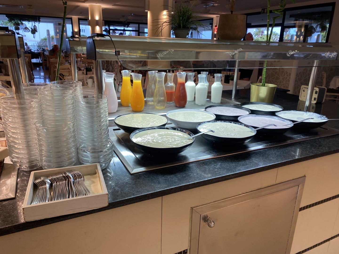 Verschiedene Frische Säfte und Auswahl an Früchtequark.👍😁