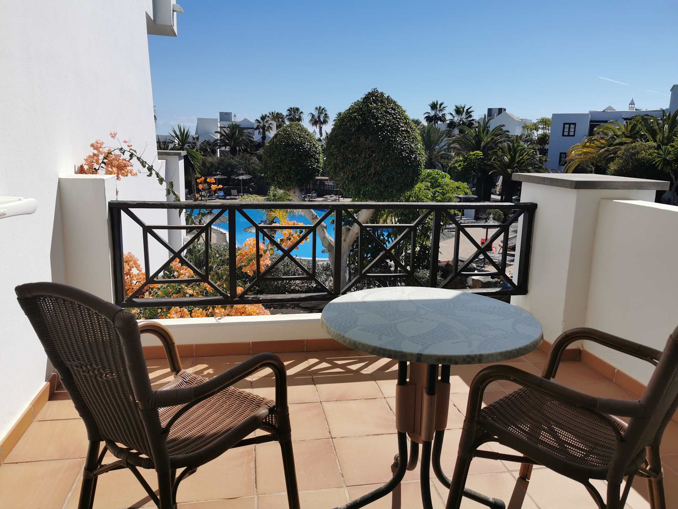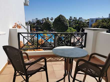 Unser Balkon zum ruhigen Pool