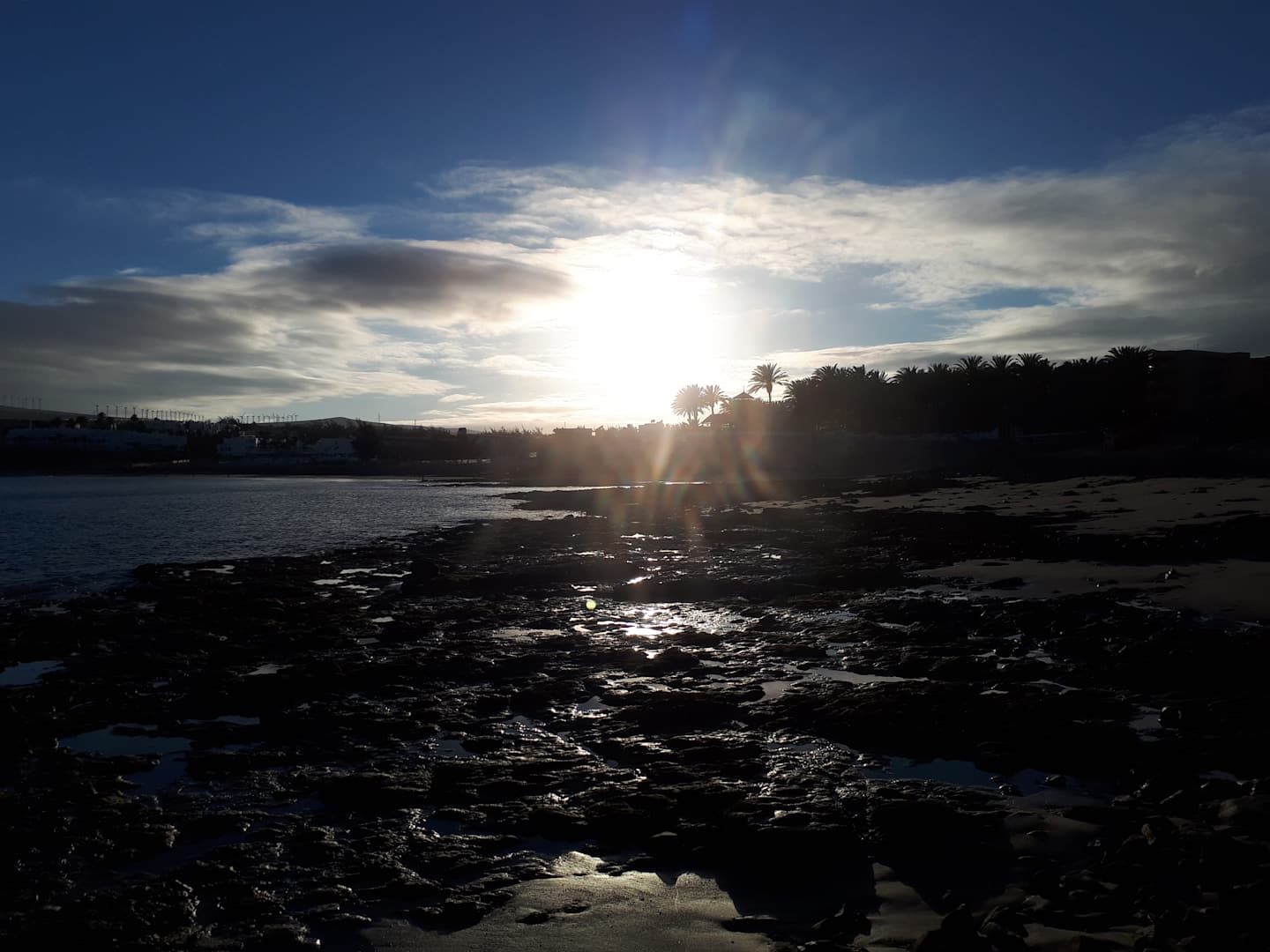 Strand bei Ebbe und Sonnenuntergang Felsenwanderung