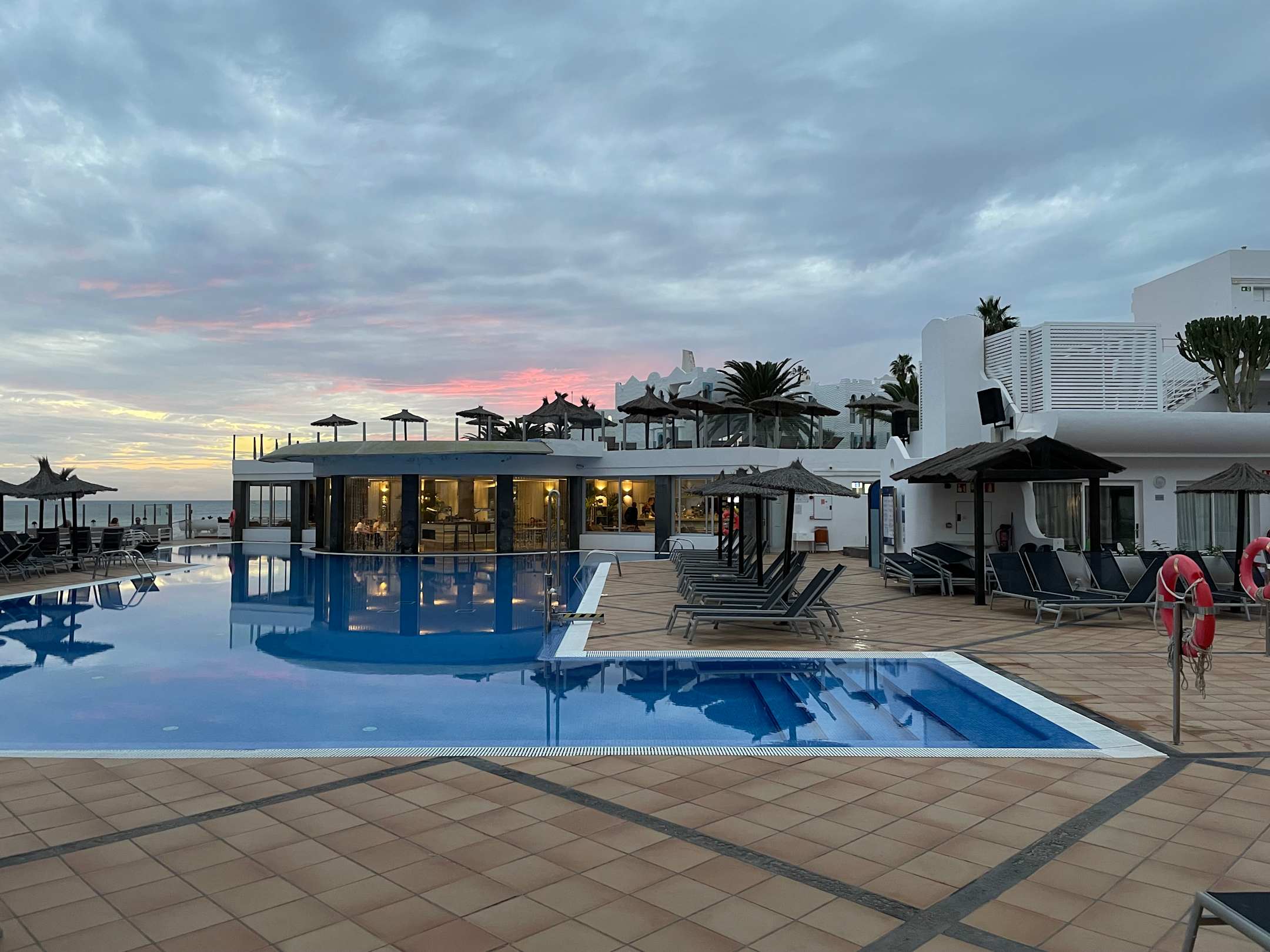 AußenansichtGroßer Pool mit Bar. Dieser Pool war im Winter unbeheizt. Etwas kleinerer Pool und Kinderpool waren beheizt (ca.22°-24°.