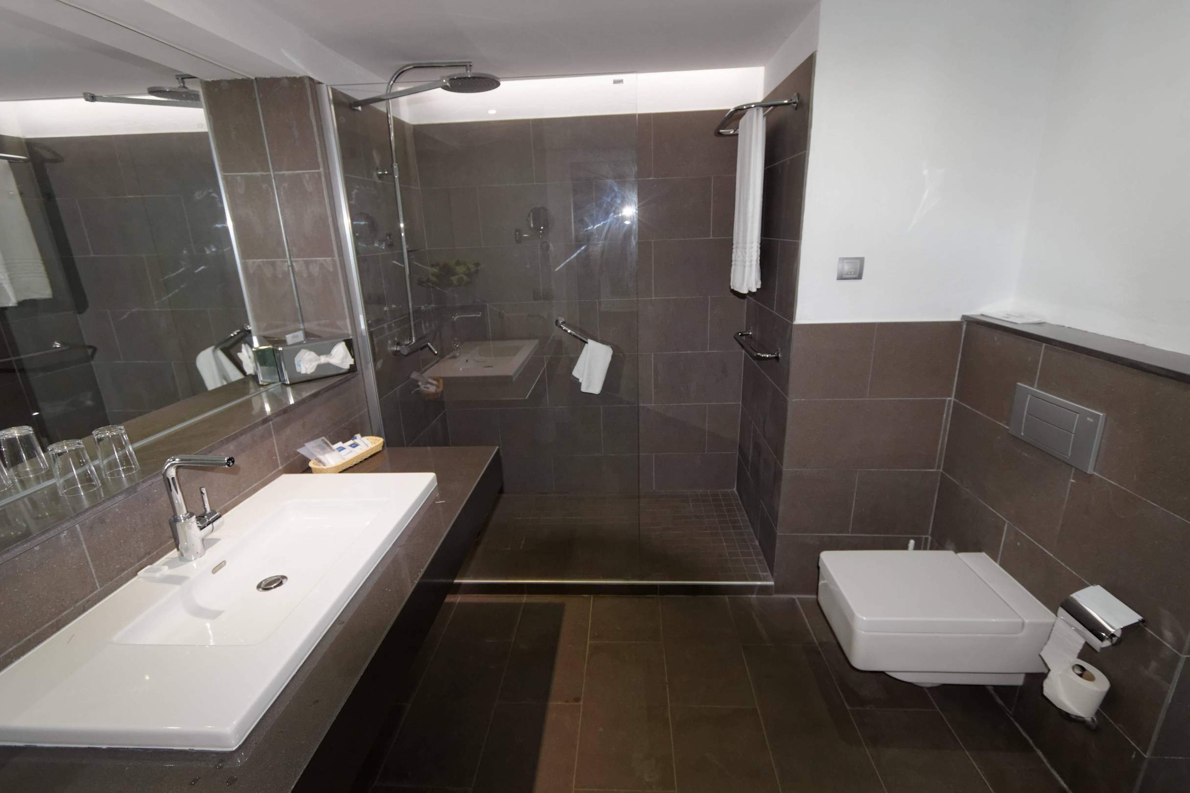 Badezimmer mit Regenwalddusche der Suite