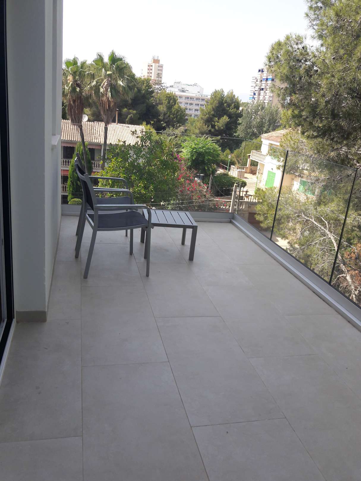Unser recht großer Balkon, Blick Richtung Flughafen (4. Etage).