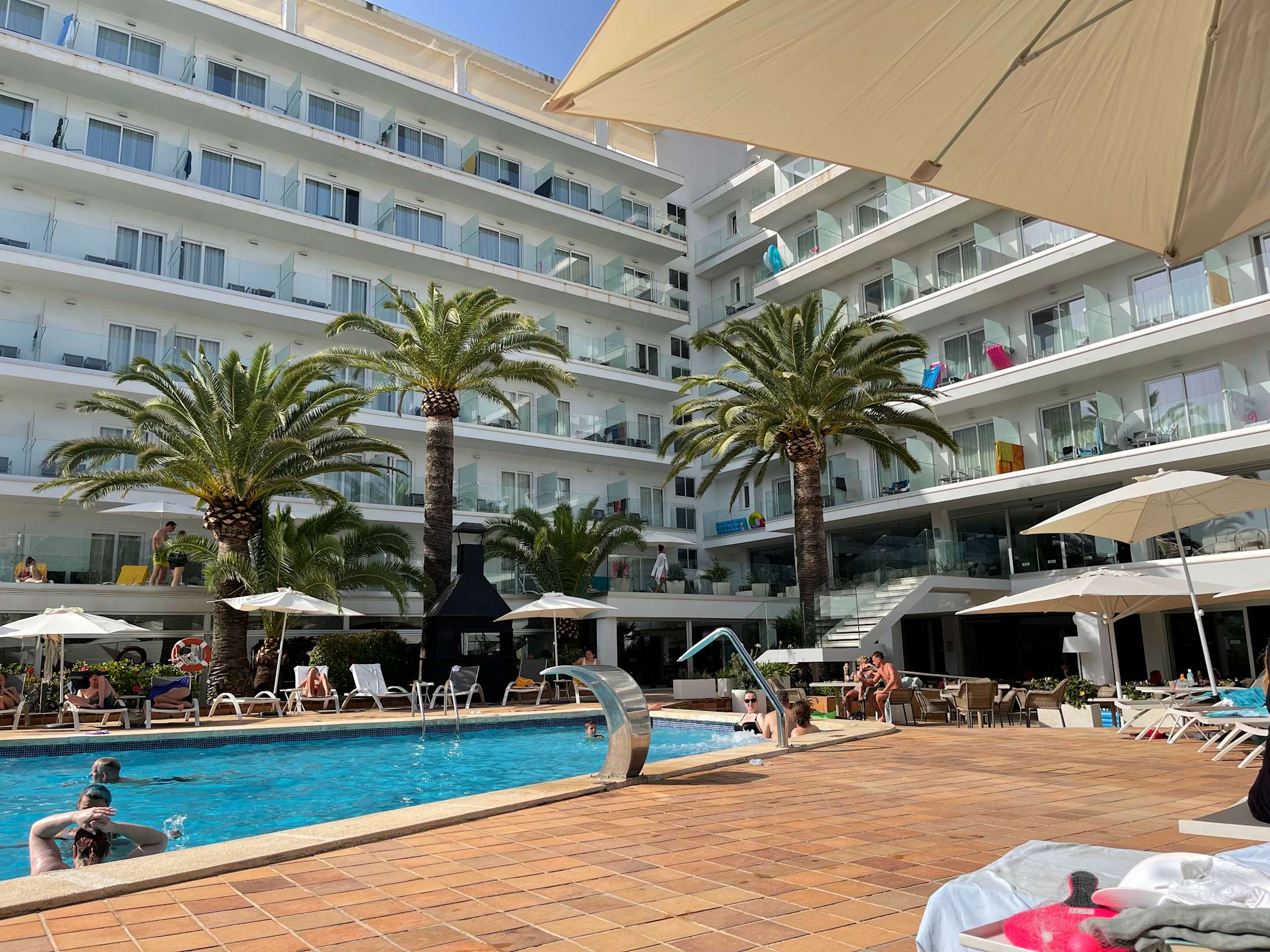 Der Pool mit Blick auf das Hotel.