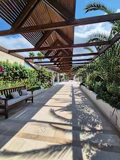 Die Anlage ist wirklich sehr schön und elegant angelegt; die Idee mit dem "Halbdach" auf den Wegen grandios, denn so ist Schatten und Sonne für jeden wie gewünscht vorhanden