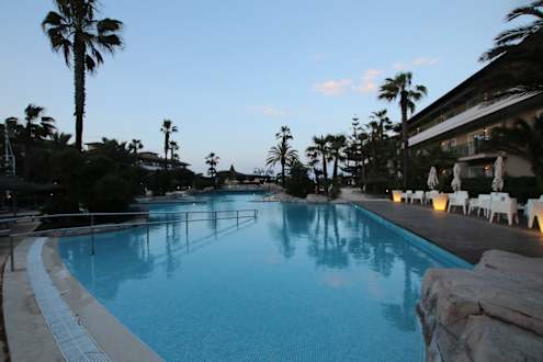 Morgens um sieben war der Pool im April noch leer