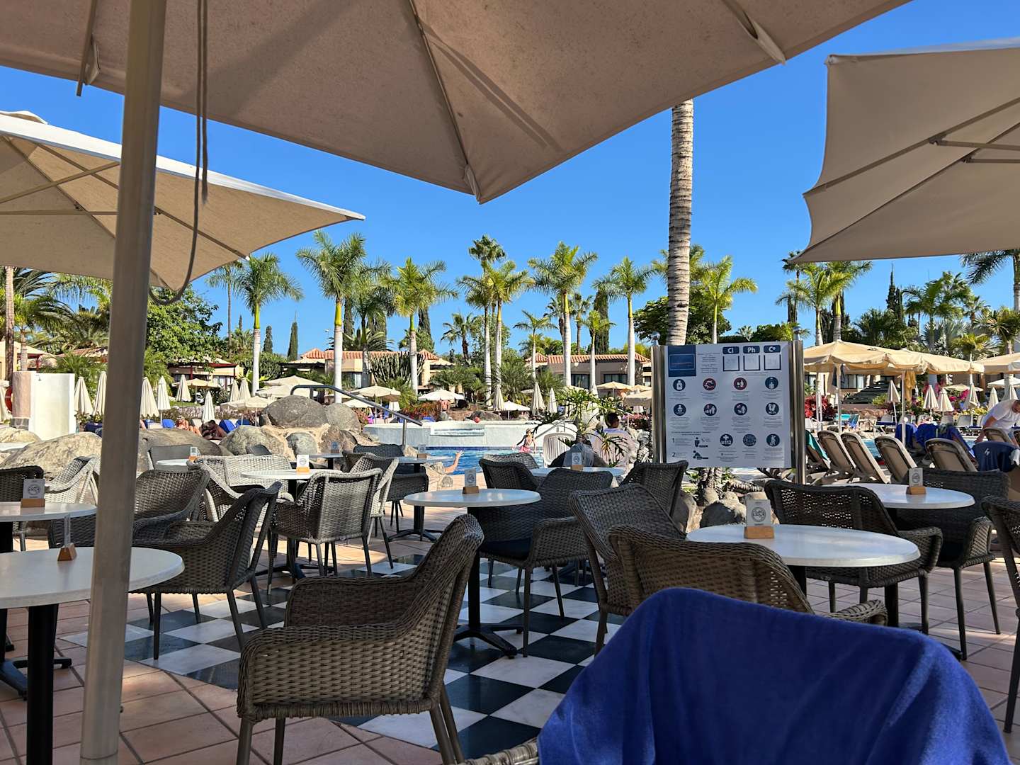 Vor der Poolbar mit Blick in Richtung Poolanlage