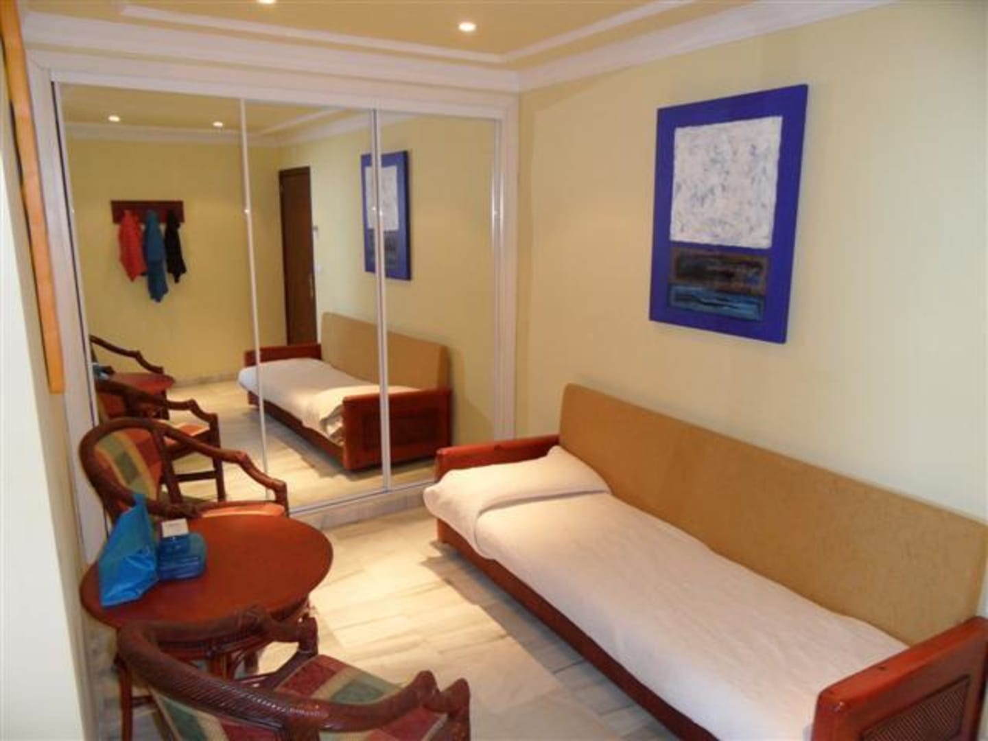 Großer Spiegelschrank mit Zustellbett.