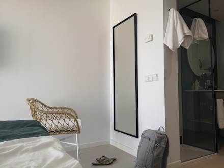 Sehr helle, minimalistisch eingerichtete Zimmer, die aus meiner Sicht seeehr schön sind
