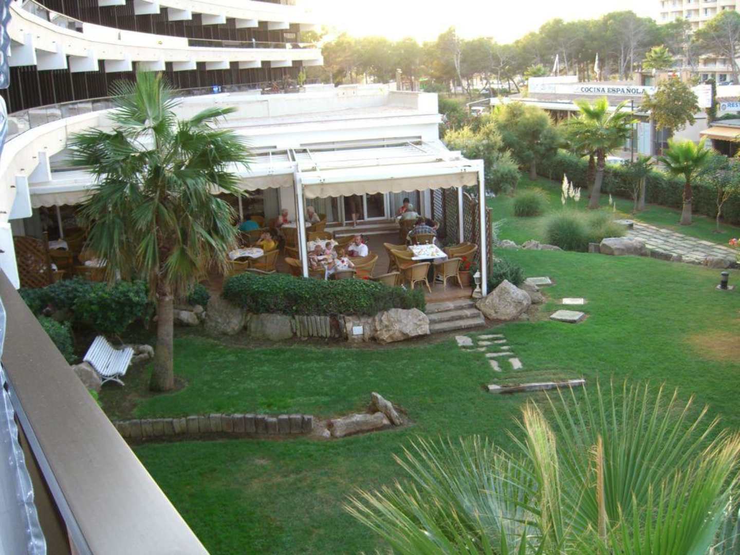 Aussicht vom Balkon auf den Speisesaal