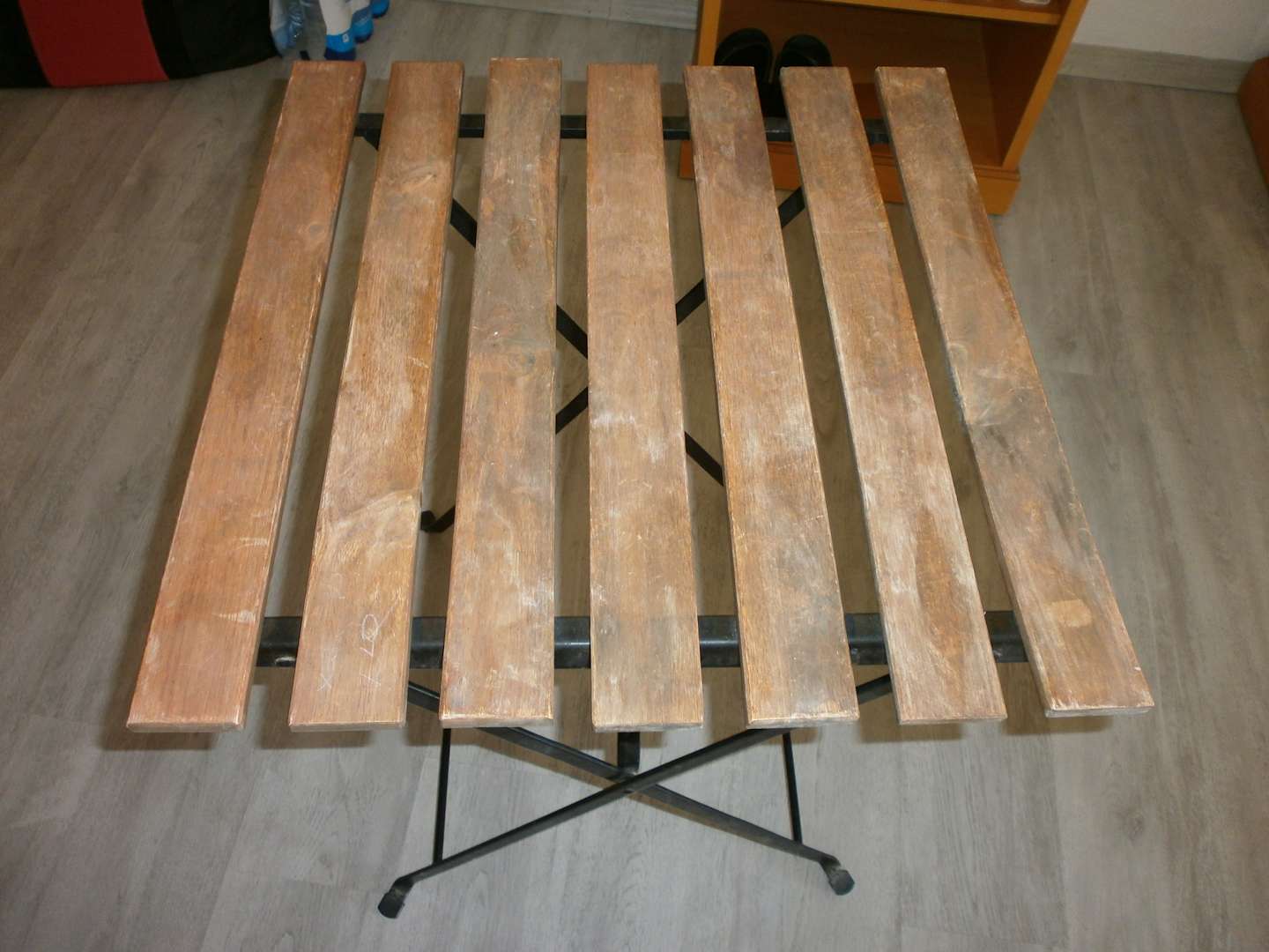 Der Couchtisch aus Holz.