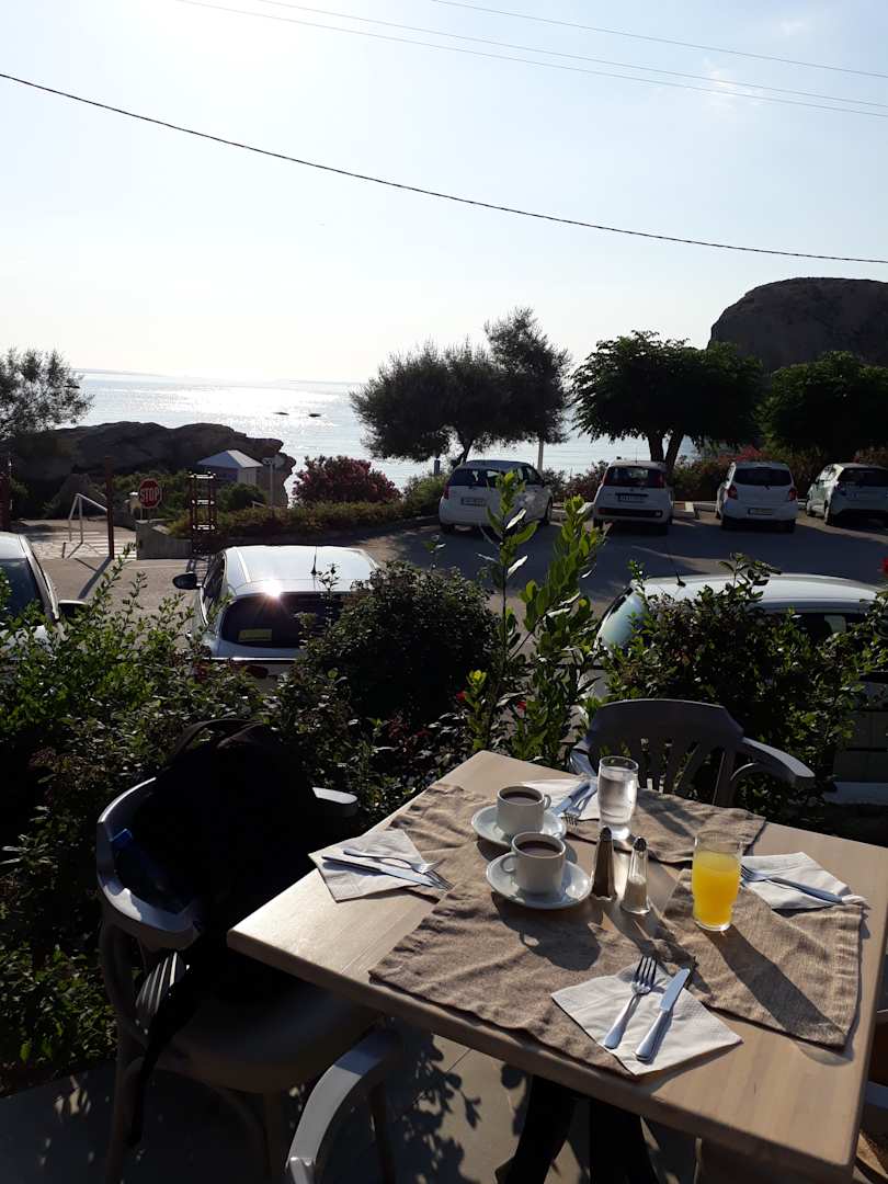 GastroFrühstück auf der Terrasse des Hotelrestaurants mit Blick aufs Meer. Hatten fast immer draussen einen Platz bekommen