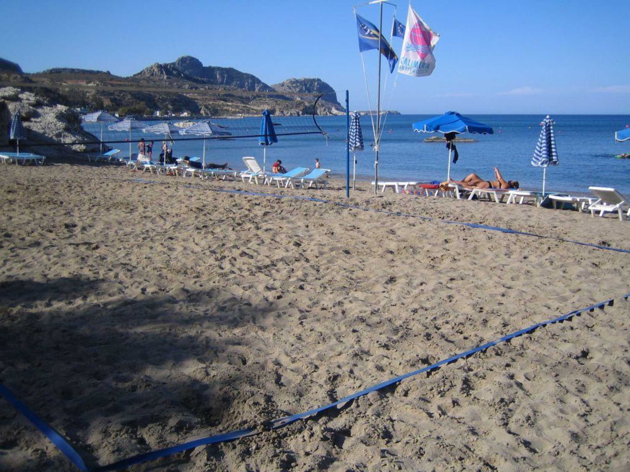 Strand mit Beachvolleyballplatz