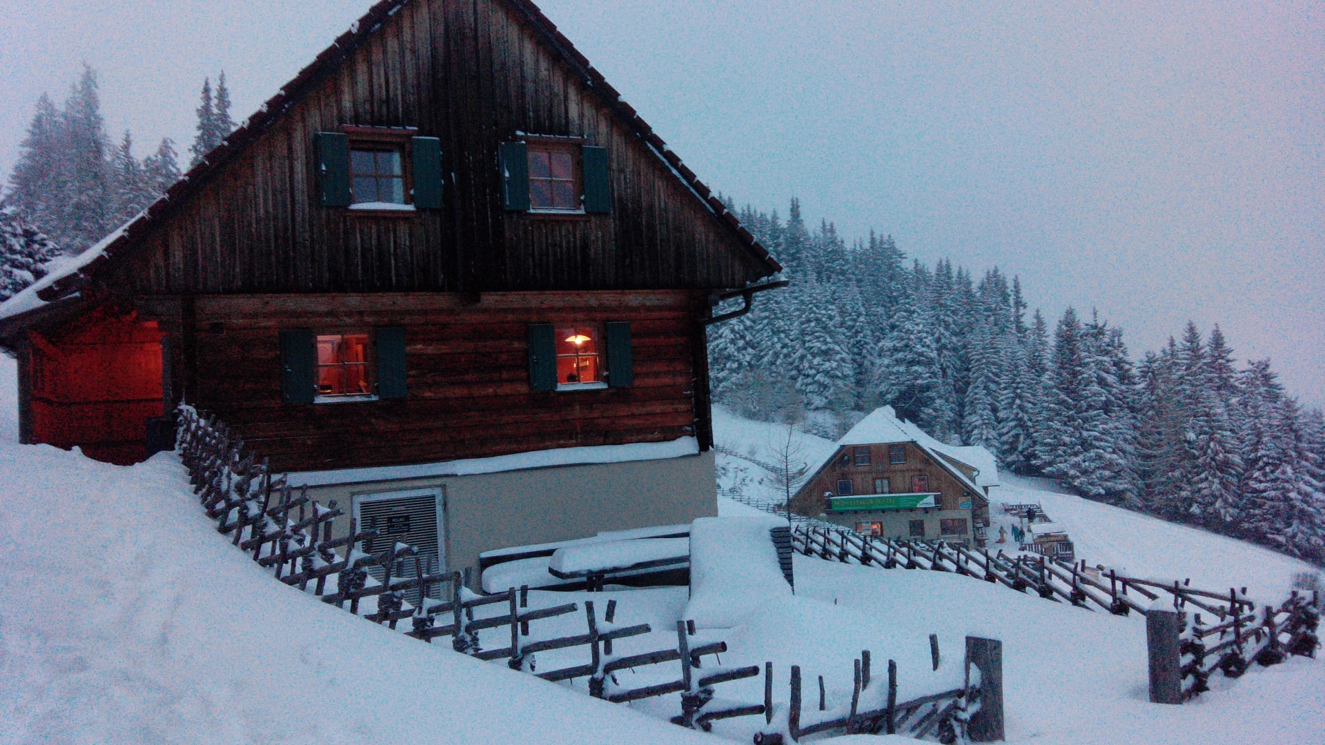 Die Hütte Erika mit der Haupthütte im Hintergrund