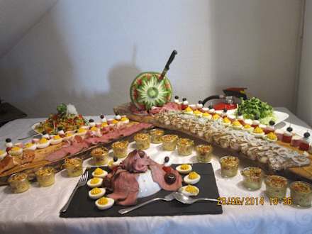 So schön dekoriert waren an einem Tag die Vorspeisen an Stelle des Salatbüfetts