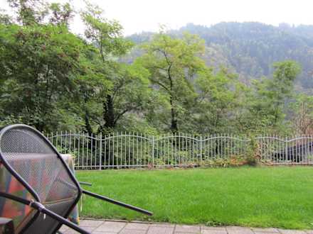 Von der Terrasse in den Garten mit Bergblick