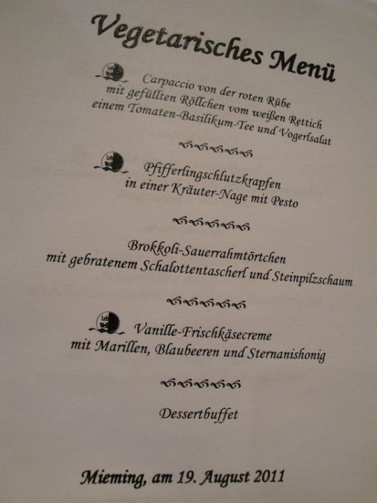 Speisekarte vegetarisch am Galaabend