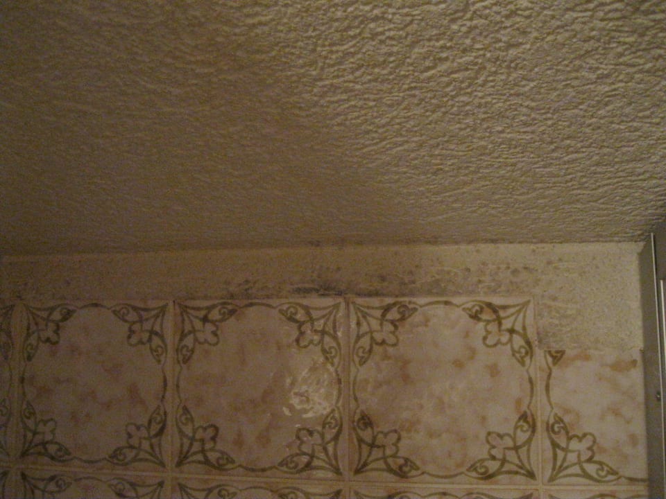Schimmel im Bad, hier an der rückwärtigen Duschwand