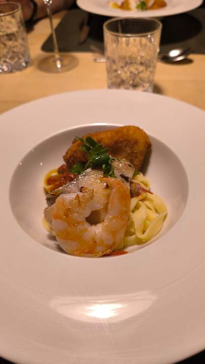Garnele auf Bandnudeln