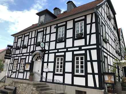 Ein wunderschönes altes Fachwerkhaus. Der Außenbereich ist gepflegt.
