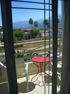 Blick vom Zimmer auf den Balkon