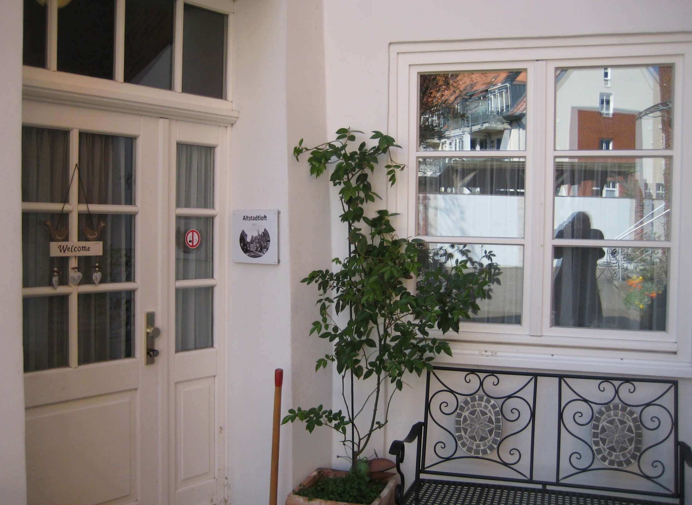Kleine Sitzecke vor der Tür