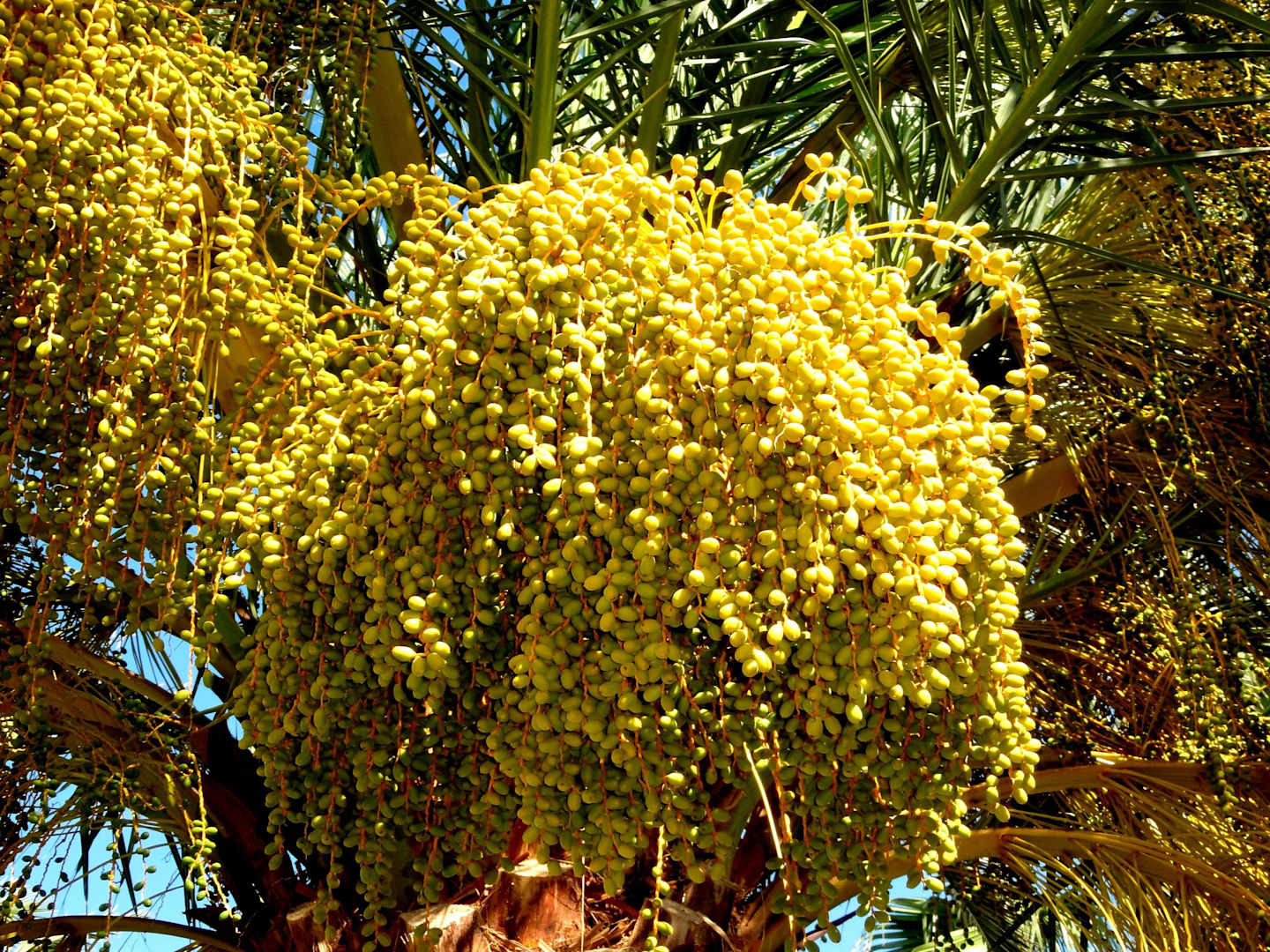Eindrücke von der HotelgartenanlageDatteln einer Palme am Pool des Hotels