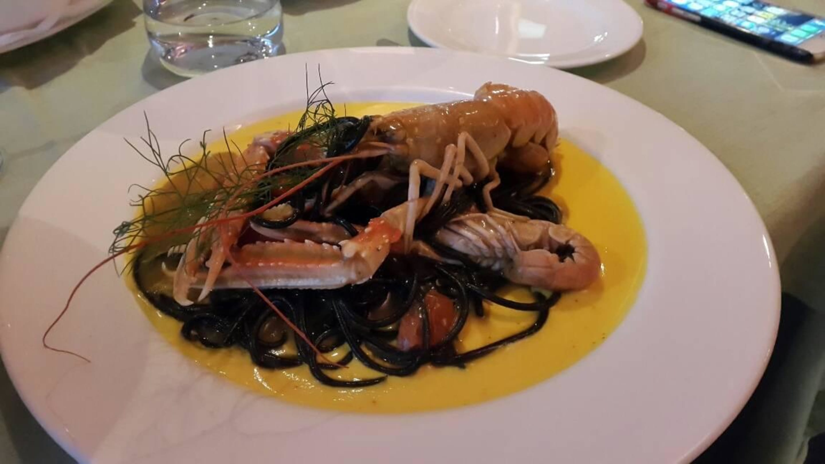 Sepia Nudeln mit Langostinos