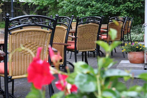 Gartenrestaurant mit Grill im Sommer