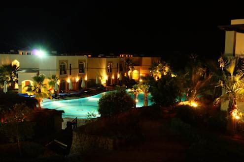 Basen nocą. Widok z tarasu na korytarzu