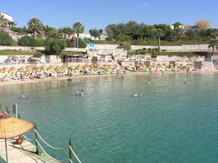 Schwimmen in einer ruhigen BuchtDie Bucht hat glasklares Wasser und es geht ganz langsam ins tiefere Gewässer.