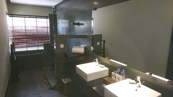 Dusche und Wanne im Deluxe-Zimmer