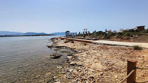 abgelegener Teil des Adult Only Strands mit grossen Sonnenschirmen