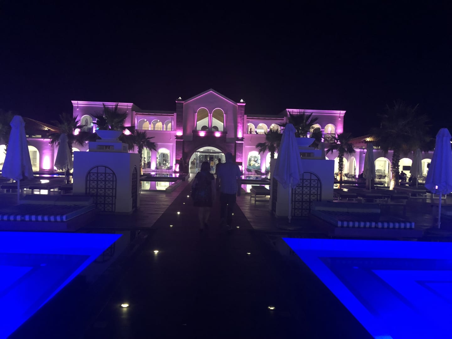 Hotel abends -leuchtet in verschieden Farben