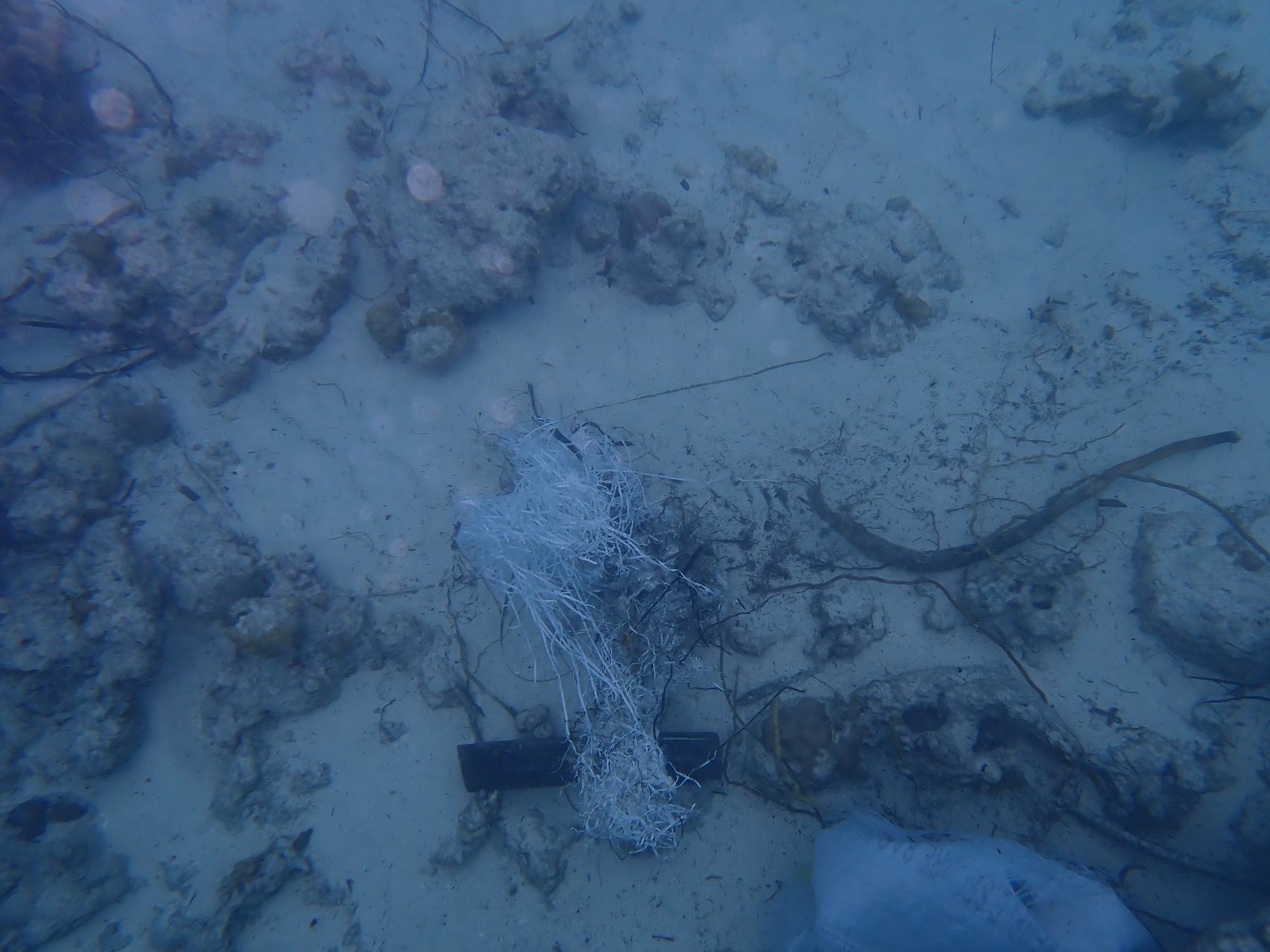 Sandsackreste im Meer