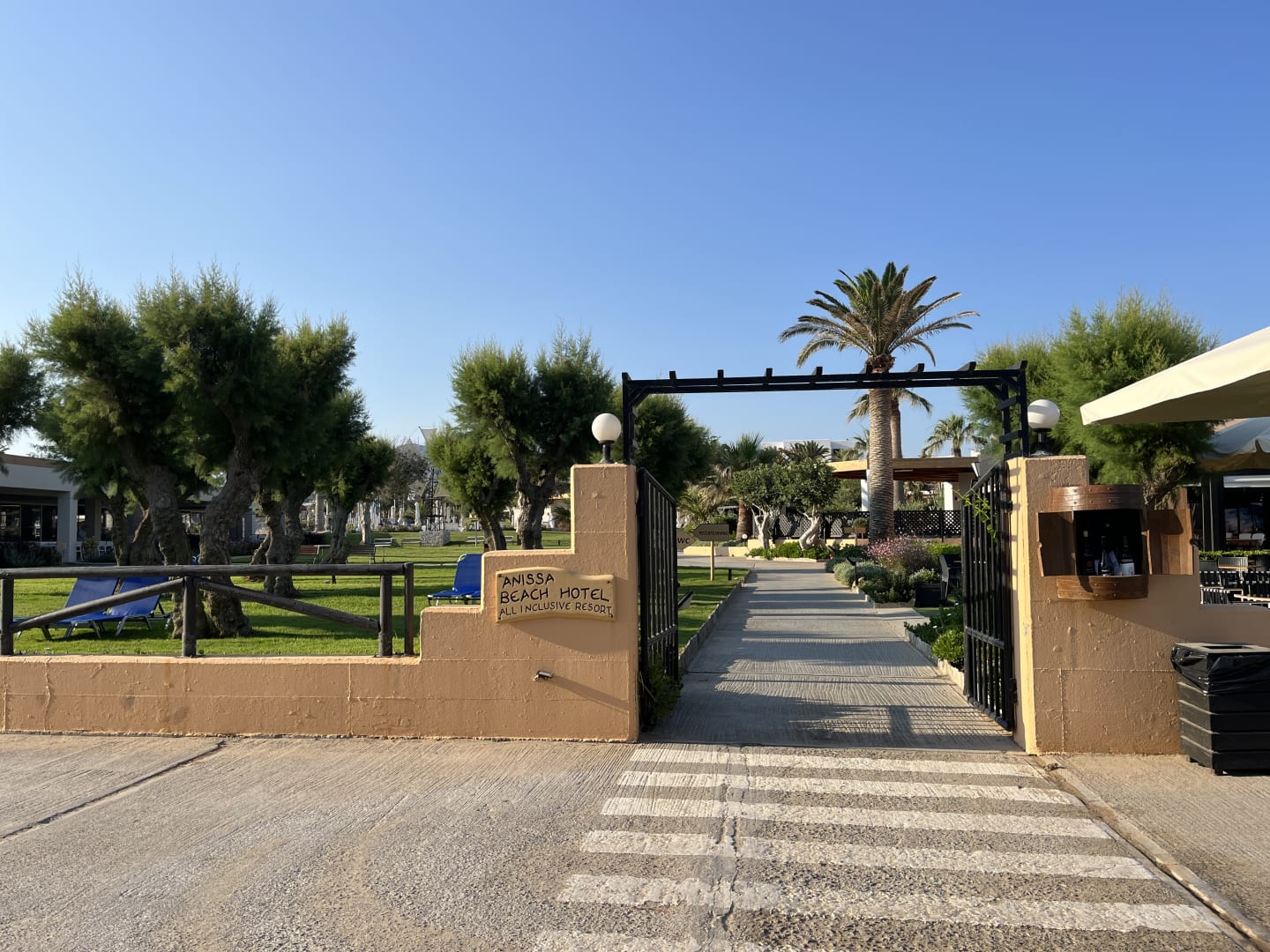 Direkter Zugang vom Strand zum Hotel über kleine Straße
