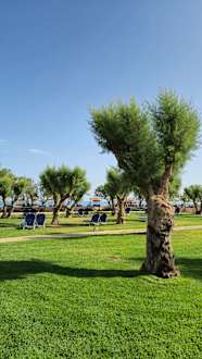 Es gab genügend Liegen in der Gartenanlage. Hier mit Blick zum Strand