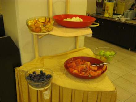 Frische Melonen, Zwetschgen, Orangen etc. Wurde immer gleich nachgefüllt.